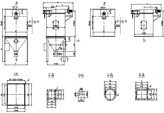 1.箱體與灰斗由定位螺栓鎖緊、整平,現(xiàn)場(chǎng)焊接,焊后不得漏氣(A型);B型直接安裝在揚(yáng)塵點(diǎn)上。