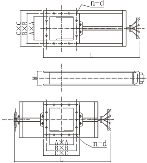 該閘門(mén)主要由框架、絲桿螺母、手輪、閘板組成,手輪(鏈輪)轉(zhuǎn)動(dòng),絲桿帶動(dòng)絲桿螺母和閘板作水平方向的往復(fù)運(yùn)動(dòng),達(dá)到閘門(mén)的啟閉目的。