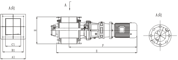 該閥由閥體、傳動(dòng)軸、葉片和減速器等組成,減速電機(jī)帶動(dòng)傳動(dòng)軸和葉輪旋轉(zhuǎn),完成給卸料。