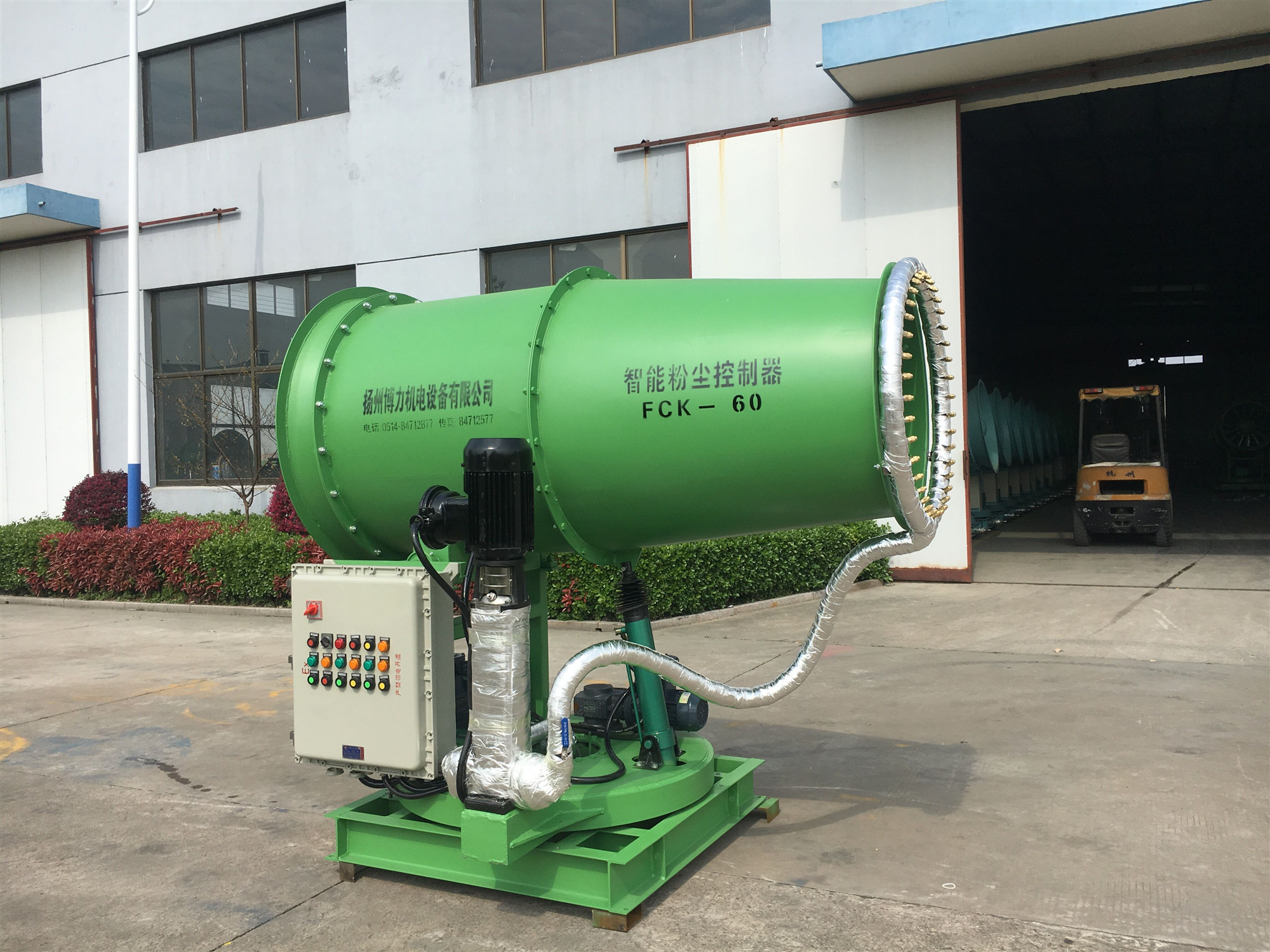 儲煤場寬度約80米,長度約452米,總投影面積約36160㎡,共設(shè)“博藝”牌防寒防爆型智能粉塵控制器(BL/FCK-HB50,BL/FCK-HB60,BL/FCK-HB100)周運(yùn)轉(zhuǎn)儲煤能力達(dá)到10萬噸,滿足3—5天堆儲能力。場地中部有橫跨高壓線(不改線),設(shè)計分為南、北2個儲煤棚進(jìn)行封閉,南棚高33.0米,寬80.7米,長267.3米,建筑投影面積約為21571㎡,煤棚內(nèi)設(shè)BL/FCK-HB50型2臺,BL/FCK-HB60型防寒防寒型智能粉塵控制器8臺噴霧抑塵降塵。北棚高33.0米,寬78.6米,長150.0米,建筑投影面積約為11790㎡。設(shè)BL/FCK-HB100型防寒防寒型智能粉塵控制器2臺噴霧抑塵降塵。