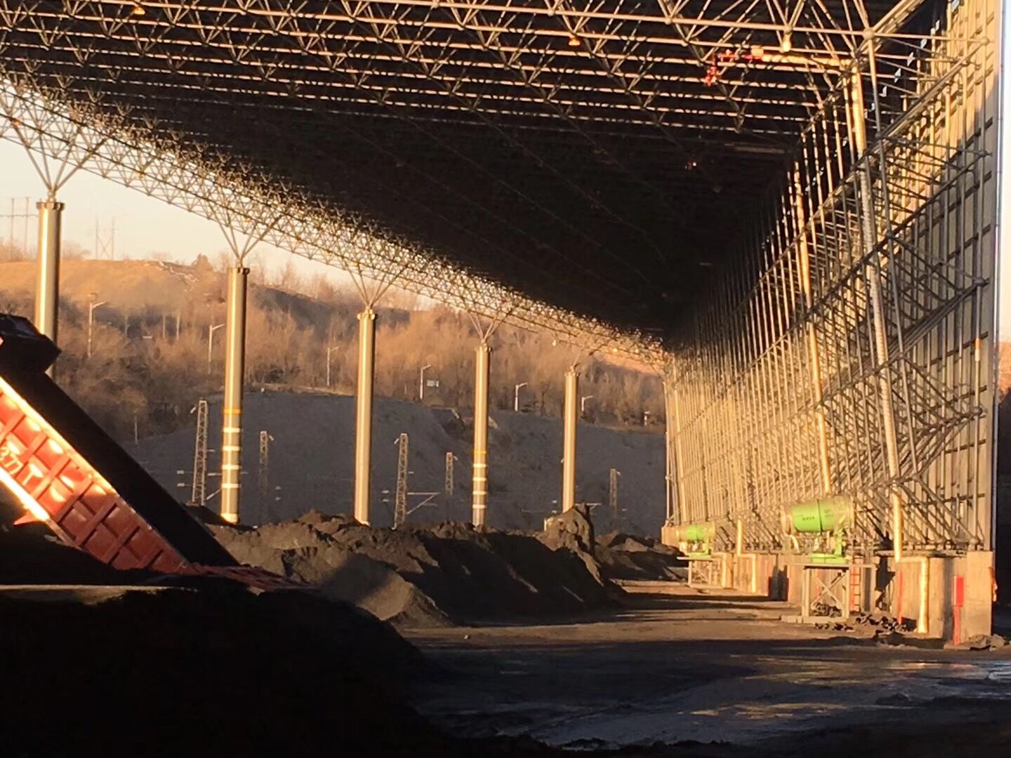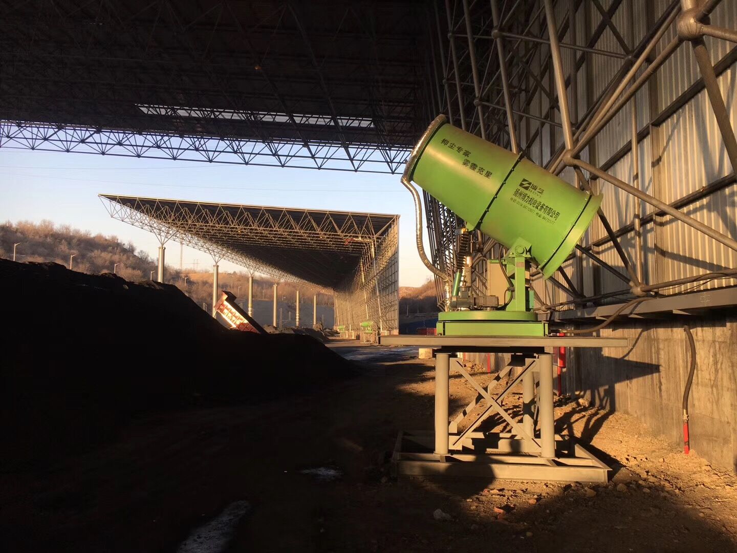 項(xiàng)目地位于山西省陽(yáng)泉市經(jīng)濟(jì)技術(shù)開(kāi)發(fā)區(qū)下五渡,陽(yáng)泉天成煤炭鐵路集運(yùn)有限公司儲(chǔ)煤棚,煤場(chǎng)有南北兩個(gè)貨場(chǎng)儲(chǔ)煤棚,南貨場(chǎng)儲(chǔ)煤棚使用8臺(tái)FCK-HB80防寒防爆型智能粉塵控制器和2臺(tái)BL/FCK-HB100防寒防爆型智能粉塵控制器全方位噴霧降塵除塵。北貨場(chǎng)儲(chǔ)煤棚使用12臺(tái)BL/FCK-HB50“博藝”牌防寒防爆型智能粉塵控制器全覆蓋噴霧抑塵。